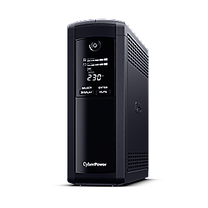 CyberPower VP1600ELCD offers home and office users a reliable battery backup and safeguards office PCs and other electronic devices from surges, spikes, brownouts and other power incidents. Designed with GreenPower UPS™ Technology to improve operating efficiency and to minimize energy consumption, users can enjoy significant energy cost savings over conventional UPS systems. The UPS provides Automatic Voltage Regulation (AVR) to maintain safe voltage for connected equipment. The UPS provides multifunctional LCD readout to display clear power and battery conditions. The product features data line protection with high-speed transmission to safeguard phones, network and communication equipment against surge/spike as well as supply 1Gbps speed to transmit data. The UPS is also compatible with PowerPanel? Power Management Software to achieve real-time monitoring and configuration.