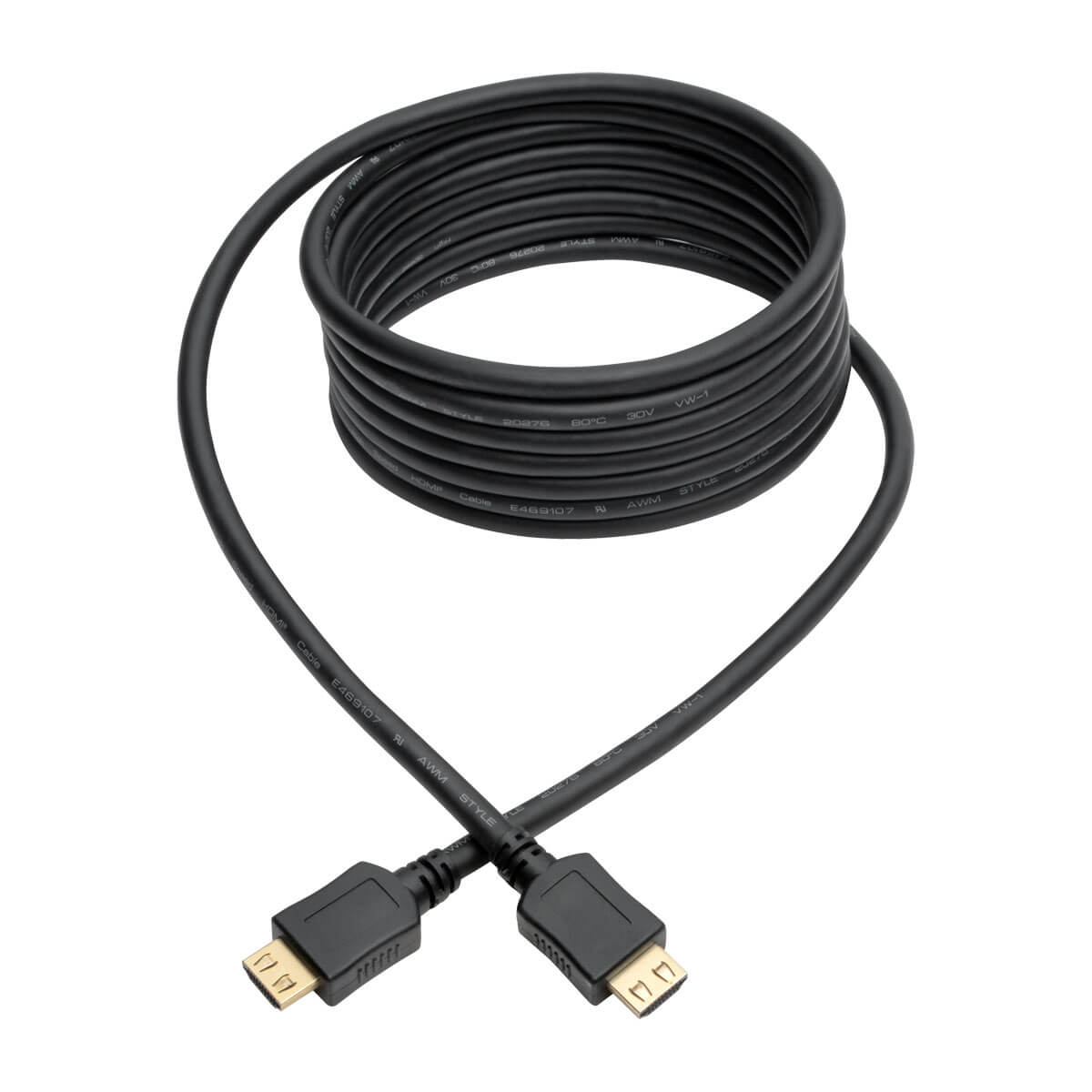 Common in home theaters, HDMI allows uncompressed digital video and multi-channel audio signals to travel together in a single cable. This Tripp Lite 4K HDMI cable provides a pure digital connection that supports UHD video resolutions up to 3840 x 2160 (4K x 2K), including 1080p, for crystal-clear picture and sound. It is backward compatible with previous HDMI generations, allowing use with lower resolution HDMI components.