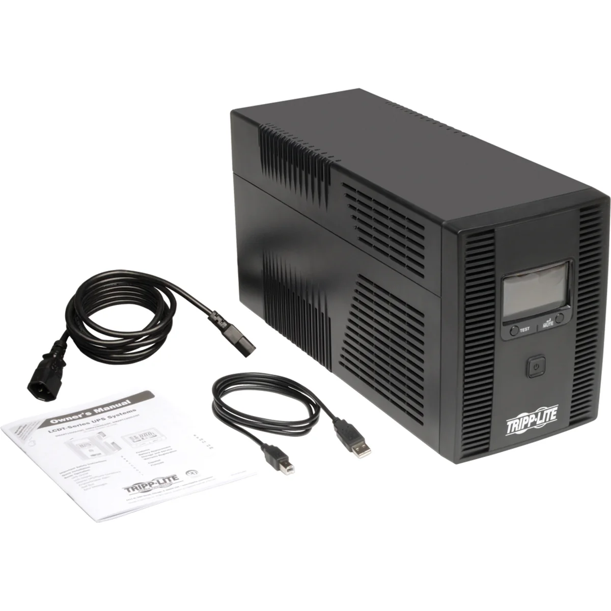 Backlighted LCD screen offers detailed UPS status information, configuration options and Error message reporting; STATUS INFORMATION includes Input Voltage, Output Voltage, Estimated Runtime (minutes), Output Load Percentage, Output Load Wattage, Battery Charge Percentage, Graphical 5-Bar Battery Charge Level and UPS Operating Mode Display; CONFIGURATION OPTIONS include Power Sensitivity, LCD Status Information Scrolling, Alarm Disable, LCD Brightness and Self Test / REPORTED ERROR MESSAGES include Replace-Battery and Overload conditions; LCD Screen rotates for vertical or horizontal UPS placement |