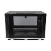 Wall-mount cabinet secures and organizes 6U of 19-inch rack equipment in network closets, classrooms and other locations with limited floor space. Houses network switches and patch panels up to 16.5 inches deep.